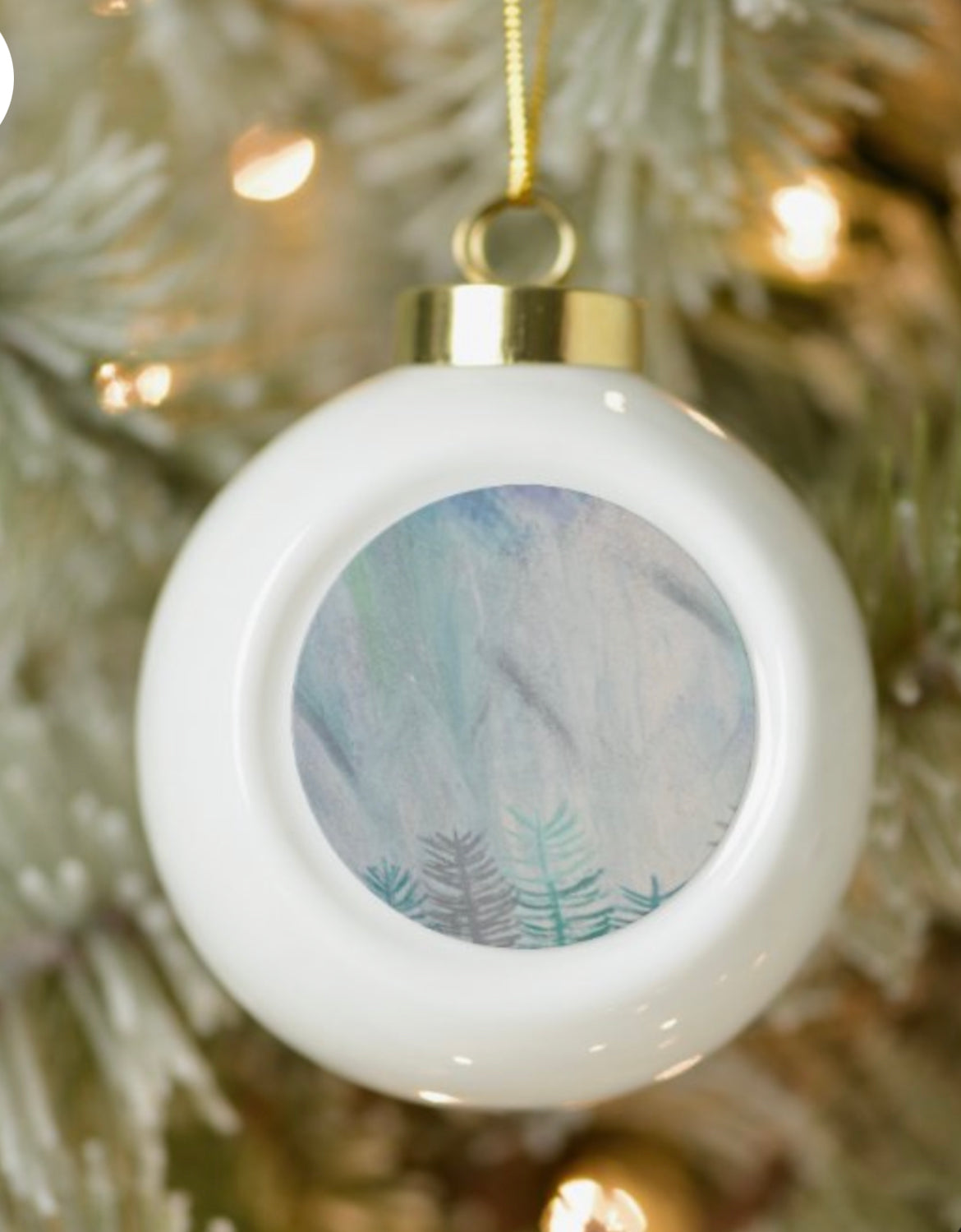 Add a little winter ❄️ wonderland to your tree this year with this one of a kind Arctic inspired painting complimenting this white and gold ceramic ornament- Grab one for yourself or a friend! This is a unique find!